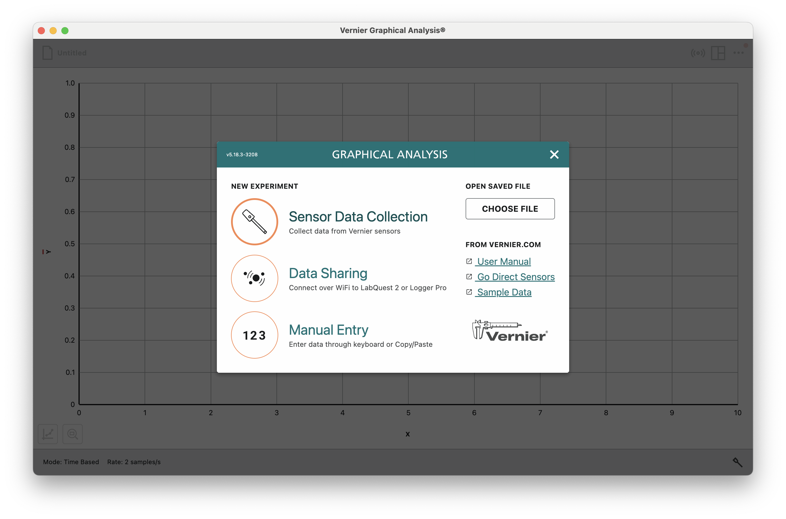 Open Graphical Analysis, and select Sensor Data Collection from the splash screen.
